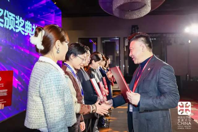 △ 全聯(lián)房地產(chǎn)商會寫字樓分會副會長、米蘭之窗董事長馬俊清先生為第18屆中國地產(chǎn)“金廈獎”頒獎典禮頒獎